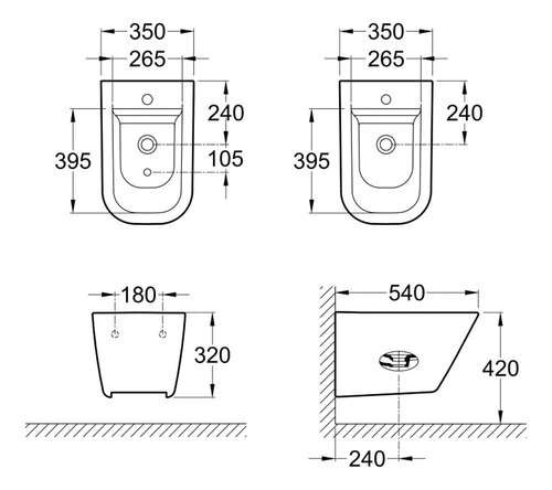 El modelo "Lluvia" cuenta con dimensiones de 350 mm de longitud, 540 mm de ancho y 320 mm de altura, proporcionando el tamaño ideal para cualquier baño contemporáneo. Aunque el conjunto de fijaciones no está incluido, este bidé está diseñado para ser una adición duradera y resistente, con un peso de 20,5 kg que garantiza su estabilidad.