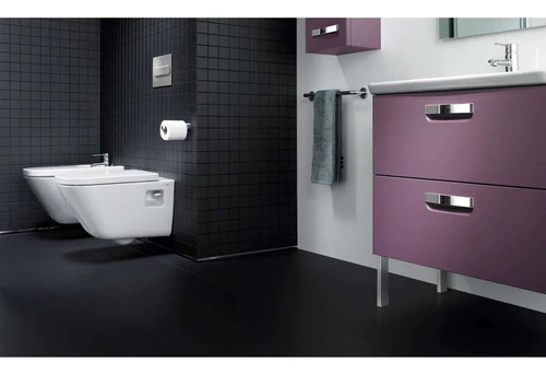 Este bidé de ROCA, con un orificio para grifería, permite una instalación personalizada según tus preferencias y necesidades. Su forma cuadrada no solo añade un toque de modernidad sino que también asegura una comodidad óptima.