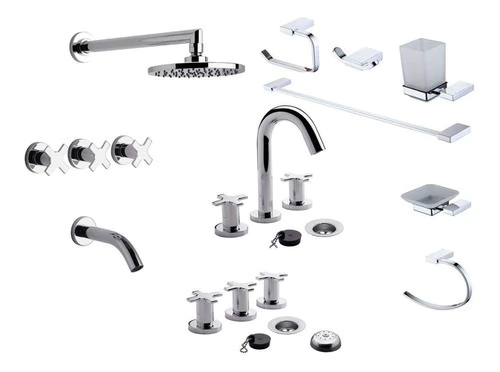 Combo griferia lavatorio bidet ducha alerce Fv + accesorios