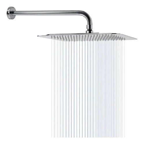 Ducha Cuadrada de Acero Inoxidable 25X25 cm + barral de 42 cm hasta la curva, distancia total 50 cm