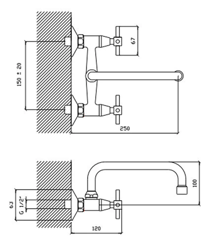 Griferia cocina Aqualaf 3002 Aruma cruz pared exterior