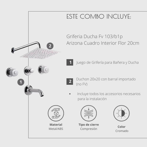 Griferia Ducha Fv 103/b1p Arizona Cuadro Interior Flor 20cm