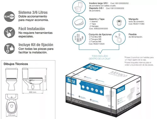 - Modelo: inodoro sanitarios calidad loza sanitaria blanca moderno combo juego set Clasico Premium hinodoro baño mochila deposito Roca Monaco Largo Tapa doble descarga Kit