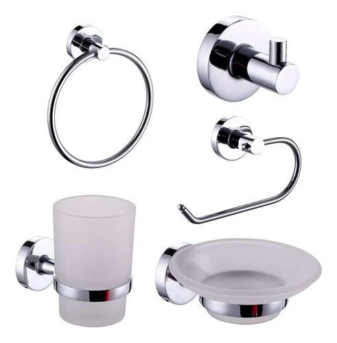 - **Kit de Accesorios de 5 Piezas**: Incluye los esenciales para organizar y complementar tu baño: portarrollos, toallero barra, toallero anilla, jabonera y gancho. Cada pieza está diseñada para resistir la humedad y mantener su estética.