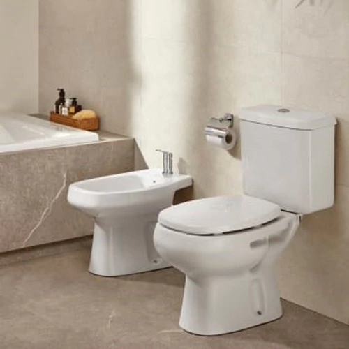 - **Bidet Mónaco 3 Agujeros**: A juego con el inodoro, este bidet incluye tres agujeros para grifería, permitiendo una instalación personalizada. Su diseño ergonómico proporciona comodidad y funcionalidad.
