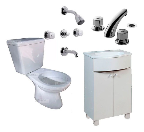 - Piezas incluidas: INODORO DEPOSITO VANITORY GRIFERIA DUCHA Y LAVATORIO