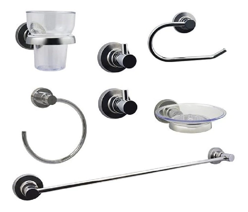 INCLUYE: (Barral, Aro toallero, Jabonera, 2 Percha, Porta rollo, Vaso y porta vaso. )